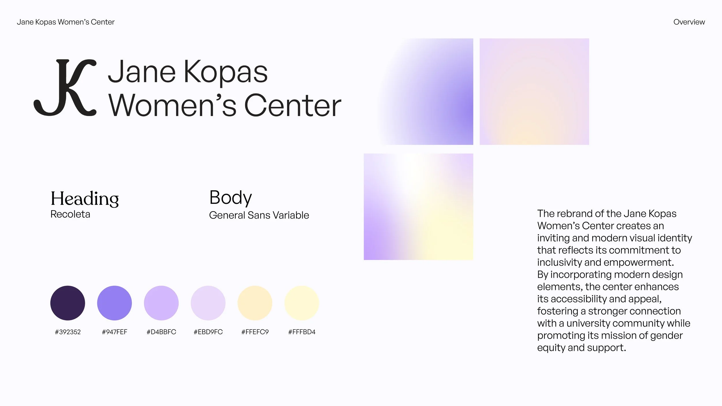 The Jane Kopas Women’s Center is a resource and advocacy hub dedicated to fostering gender equity, empowerment, and education within the University of Scranton community. This rebrand brings the center into a new, modern age, establishing an inclusive and welcoming identity that better reflects the center’s evolving mission and diverse young adult audience.